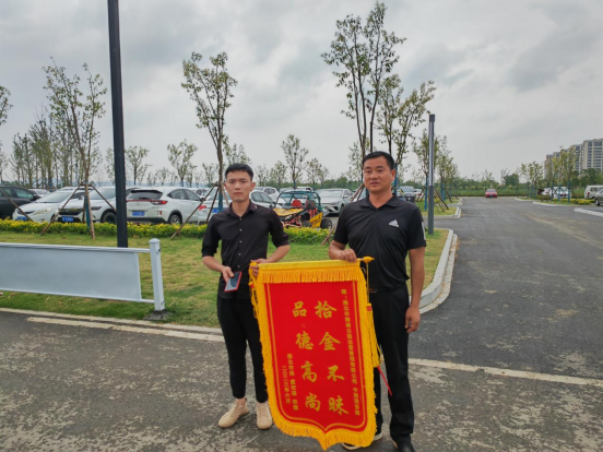 2023年6月17日晚上8点,南湖公园公司中湖项目部保安赵新代在金沙戏水沙滩巡查当中捡到价值九千多块的苹果手机一部,第一时间将情况汇报至公司物业群里,并积极主动尝试联系失主。通过多方打听当晚终于物归原主,失主找回手机后十分激动,为了表示感谢,失主第二天送来锦旗一面。