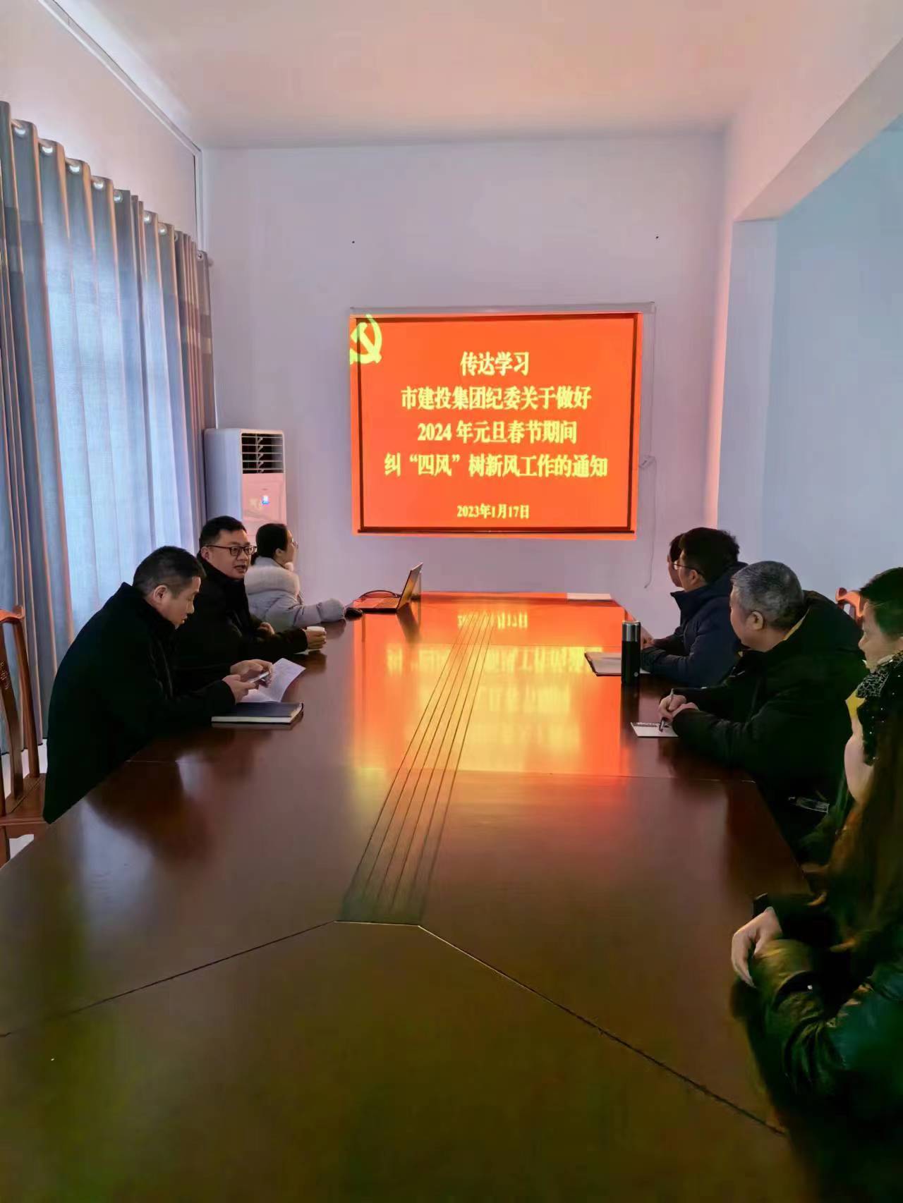 2024年春节将至,为贯彻落实《市建投集团纪委关于做好2024年元旦春节期间纠“四风”树新风工作的通知》文件精神,启航市政公司党支部全体党员以集体学习的形式传达学习了《市建投集团纪委关于做好2024 年元旦春节期间纠“四风”树新风工作的通知》。