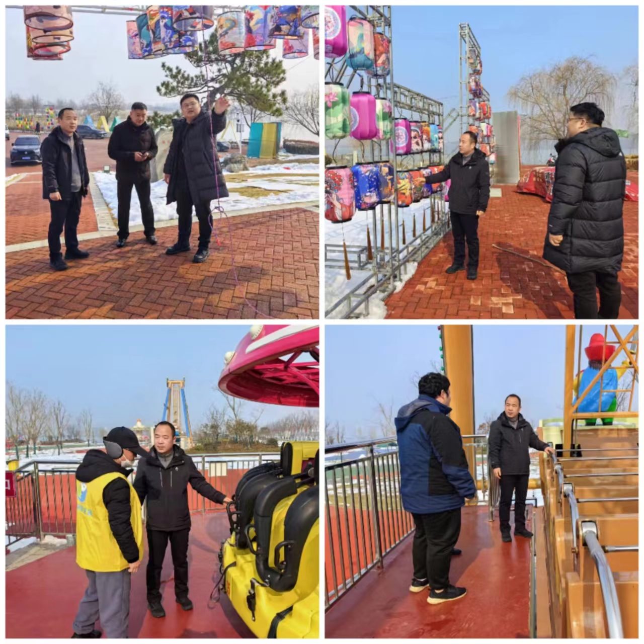 2月7日上午,市建投集团党委委员、副总经理、文旅集团总经理赵焱同志深入到绿金湖,实地了解节日安全工作和春节活动准备情况。在绿金湖东码头游乐园,赵焱同志逐一检查游乐设备,与工作人员交流,要求操作人员要严格按照规程操作,确保设备运行安全,让游客安心游玩。在绿金湖圆梦岛,了解春节灯展的准备情况,要求在为游客提供靓丽灯展的同时,注重电力设施的规范施工,确保各项安全工作,让广大市民玩的开心,玩的放心。南湖公园公司工作人员表示,将全力以赴做好活动的组织,在为市民送上丰富节日活动的同时,把安全工作放在首位,让广大市民度过一个欢乐祥和的春节。