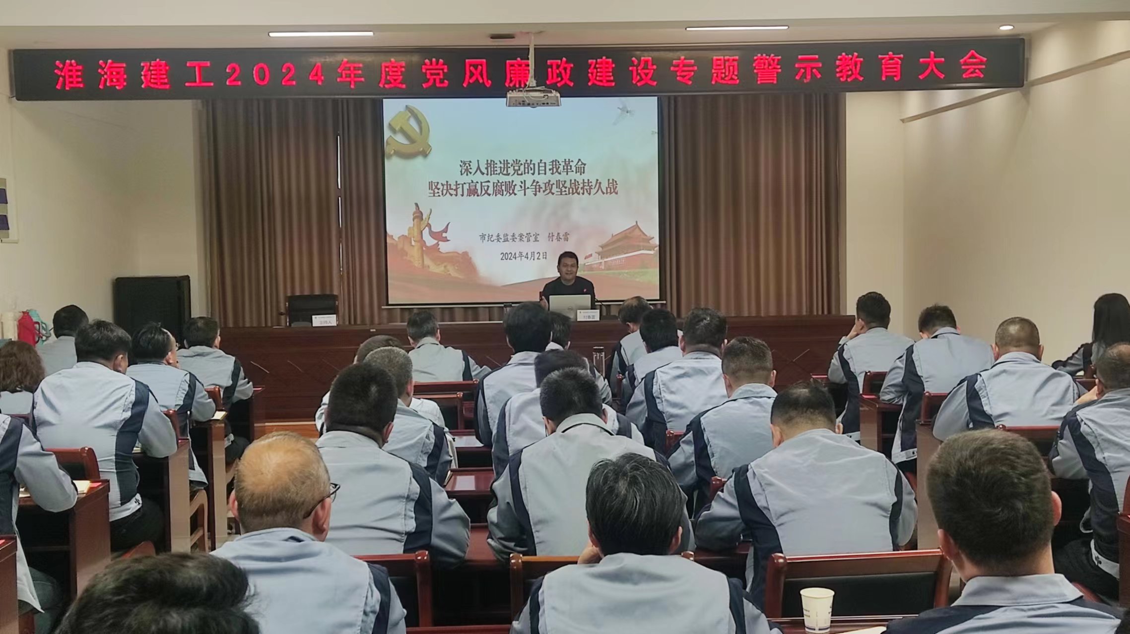 为深入贯彻落实二十届中央纪委三次全会会议精神,加强公司党风廉政建设和反腐败工作,促进党员领导干部廉洁从业。4月2日下午,淮海建工公司召开专题警示教育大会,会议邀请市纪委监委案件监督管理室付春雷主任授课。