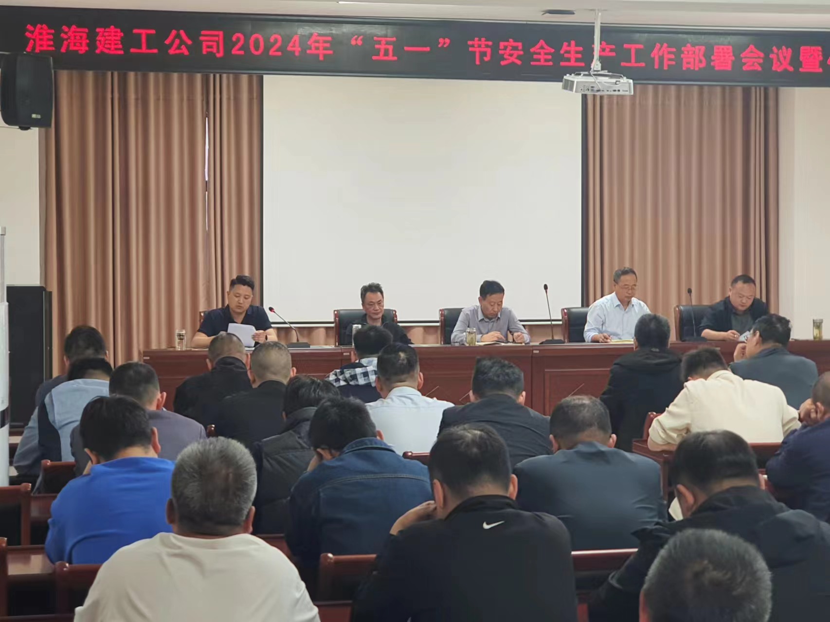 4月30日上午,淮海建工公司召开“五一”期间安全生产工作部署会暨4月份安全环保办公会议,深入学习贯彻习近平总书记关于安全生产工作的重要指示批示,严格落实集团公司有关“五一”期间各项工作部署安排,确保公司广大职工平安过节,为公司安全生产营造良好环境。