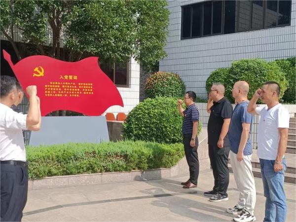 在活动的现场,在党支部书记陈银行的带领下,众人郑重地高举起右手,再次铭记入党誓言,回顾入党历程,深刻反思入党初衷。这一行动旨在进一步巩固理想信念,增强组织的创新力、团结力和战斗力,鼓舞全体党员在各自的岗位上积极行动,争作表率,勇于成为排头兵。