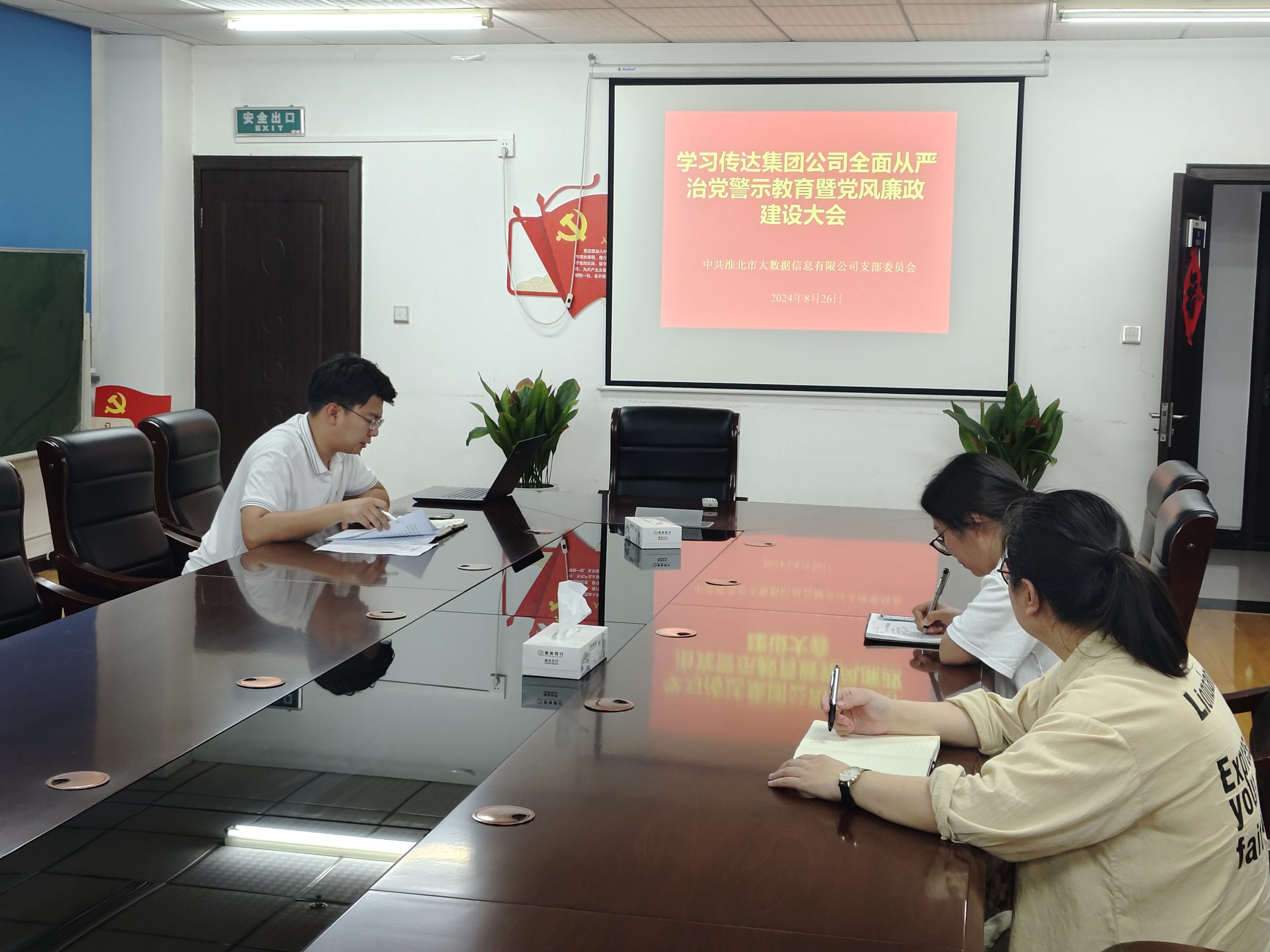 8月26日,大数据党支部在五楼会议室召开学习传达集团公司全面从严治党警示教育暨党风廉政建设工作会议,会议由支部书记杨旸主持,全体党员参加了会议。