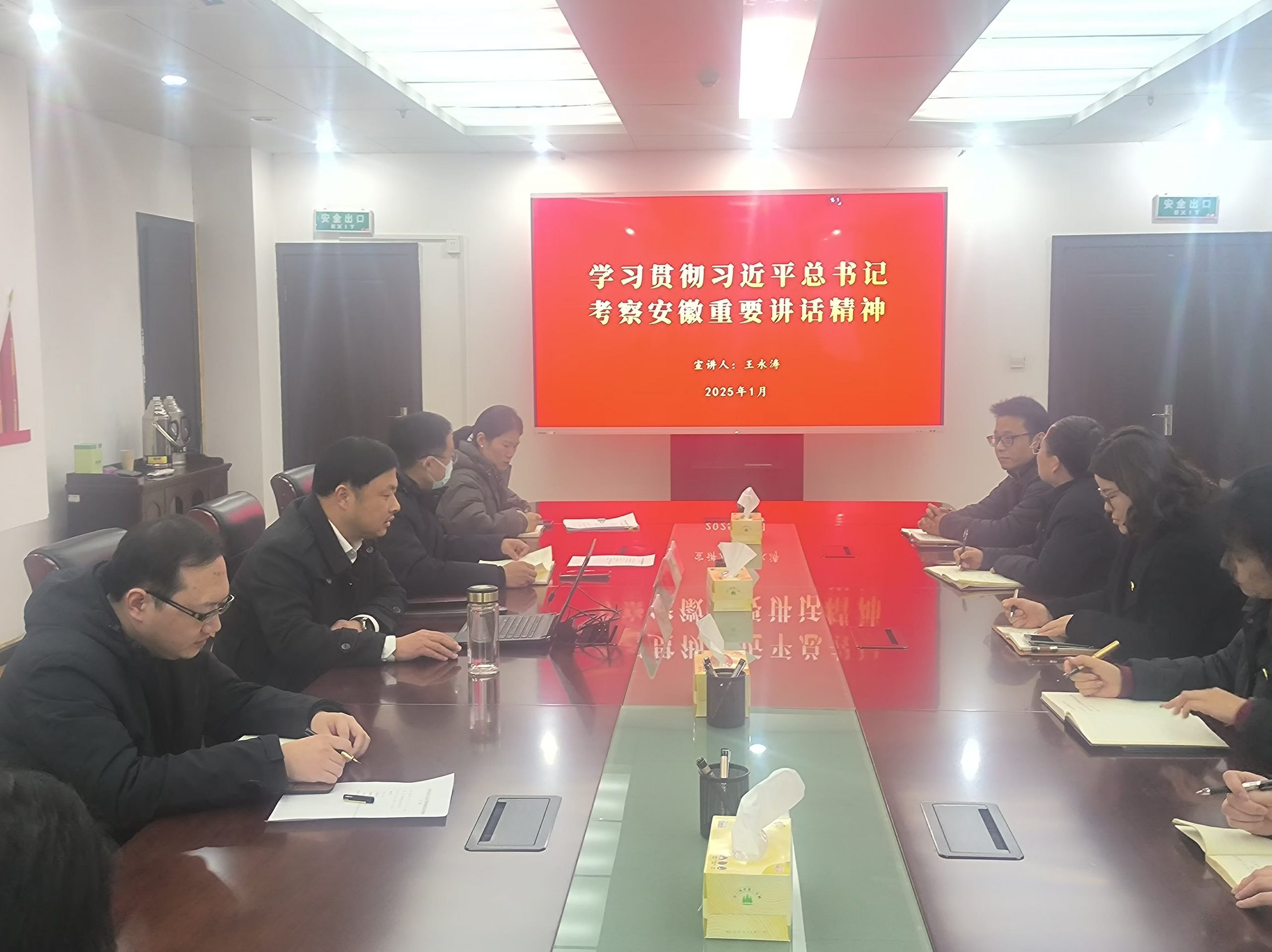 为深入学习贯彻习近平总书记考察安徽重要讲话精神,切实把思想和行动统一到讲话精神上来,2025年1月2日下午,市建投集团党委书记、董事长王永涛深入金控集团党总支,为全体党员干部带来了一场生动而深刻的宣讲会。金控集团党总支书记张立哲主持会议。