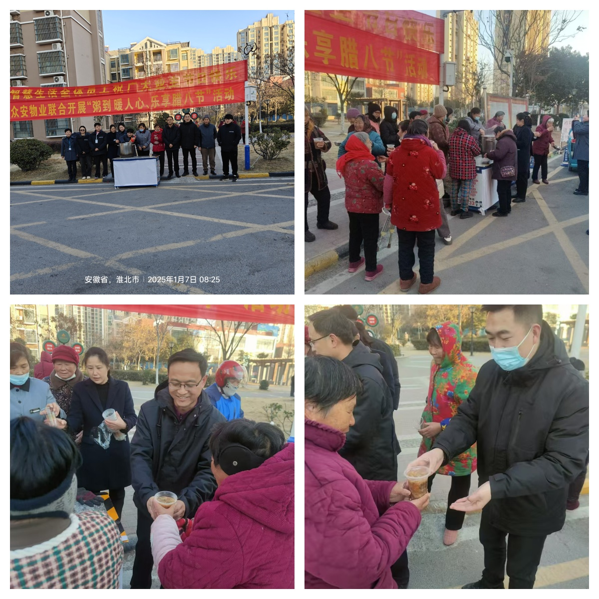 为弘扬中华民族传统文化,营造良好的节日气氛,2025年1月7日保障房公司党支部赴桥头新村公租房小区开展“浓情腊八节,粥到暖人心”主题党日活动,活动中,志愿者们为租户送上暖暖的腊八粥,祝愿大家腊八节事事“粥”全,平安喜乐。