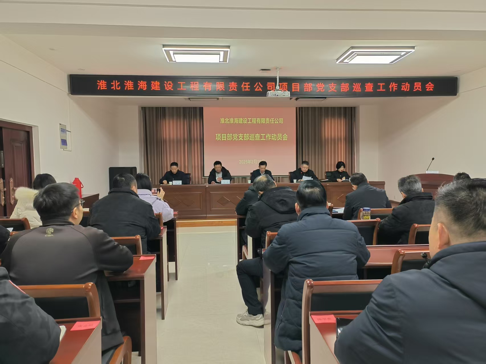 2月10日,淮海建工公司项目部党支部巡查工作动员会在公司四楼会议室召开。集团公司党委专职副书记陈伟,集团公司党委委员、纪委书记、监察专员姜斌,集团公司纪委副书记张权出席会议,淮海建工公司党总支书记、董事长石银燕主持会议。动员会上,淮海建工公司党总支副书记、副总经理李冰,总工程师苏伟,项目部党支部书记刘华依次作表态发言。