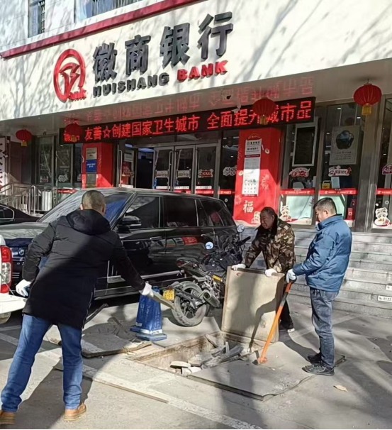 近期,城泊公司接到工作人员报告,位于徽商银行门前的停车位存在安全隐患。经过现场勘察,发现该处停车位下方隐藏着一个坑洞,由于长期缺乏维护,导致盖板严重破损,存在车辆陷入的风险。为了防止意外发生,城泊公司迅速启动了紧急修复计划,对坑洞进行填补和加固。
