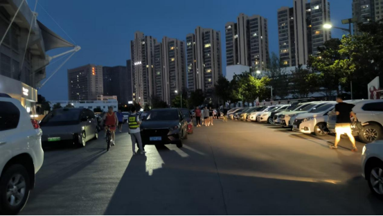 城泊公司针对体育中心周边车流、人流集中的特点,提前制定保障方案,增派经验丰富的员工负责现场值守。活动从傍晚7点开始,身着制服的城泊员工在停车场入口、内部道路交叉口、车位密集区等关键点位开展引导工作,成为夜市里一道忙碌而温暖的风景线。