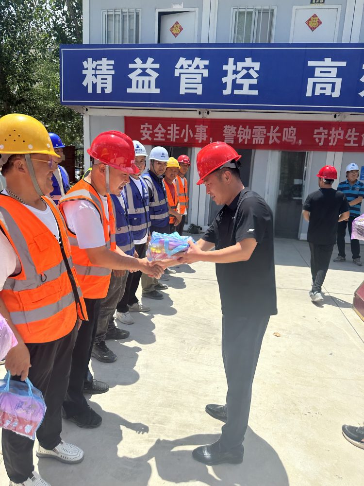 在项目现场,赵焱将防暑降温物资送到一线施工人员手中,对他们在高温环境下坚守岗位、辛勤付出表示感谢,同时叮嘱大家要注意防暑降温,确保自身安全与健康。